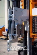 Turchi 300F self-propelled hydraulic pile driver, ideal for photovoltaic systems and fences. Pile driving height up to 4.5 meters. Hyundai 45 kW engine, 950 joule Indeco hammer, built-in GPS and column tiltable down to -51°. Compact, precise and powerful, with 4,500 kg operating weight and 100% rubber tracks.