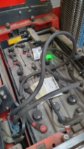 Endkundenbemerkung: Die Angabe der Betriebsstunden kann aufgrund von Zwischenvermietungen vom tatsächlichen Wert abweichen. Aktuelle Betriebsstunden erhalten Sie jederzeit gerne auf Nachfrage. Die Auslieferung des FFZ erfolgt mit gültiger FEM-Prüfung und technischer Durchsicht in unserer Werkstatt., Sonderausstattung: f. Breite ü. Gabelzinken 560mm, Hydraulische Stützrollen, Fahrgeschwindigkeit 10km/h, Schleichfahrtfunktion, Vorbereitung für Nassbatterien, Batt. Kabel m. Anschluß Flex, Durchgreifschutz Drahtgewebe, Bügel für Anbauelemente, Halter Terminal + 24 V Spann., Klemmbrett, Soft Landing des Gabelträgers