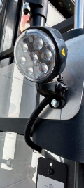 Deichsel Mitfahrer, Gabelrollen Tandem HD, Antriebseinheit für erhöhte Resttragfähigkeit, Plattform nach oben klappend, Schutzbügel, 10km/h Version, Fingerschutz Plexiglas, Kühlhausausführung, seitlicher Batteriewechsel möglich