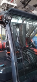 Endkundenbemerkung: vorgebauter Seitenschieber, 4 Ventile mit Schlauchführung für 3. und 4. Ventil, Verriegelung für die 4. Hydraulikfunktion für Klammer-Anbaugeräte, Lastschutzgitter LED Arbeitsscheinwerfer, LED Rückkombileuchte, Blaues Warnlicht nach vorne und hinten gerichtet, Panoramaspiegel