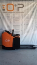 Plattform Kühlhaus, manuell hochklappbar; feste Seitenschutzwände mit kleiner Deichsel; Servolenkung, 8 km/h Version; Gleitschienen inkl. Kletterrolle; Gabelrollen Einfach, Stützrad doppelt; PIN-Code; Batterie Schnellverriegelung; blaues Warnlicht nach hinten gerichtet