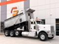 2011 Peterbilt 388. 600HP Cummins ISX15. 18 Ft Steel Body. 18 Speed Transmission. 46,000LB Full Locking Rears. 20,000LB Steerable Air Lift Axle. 20,000LB Steer Axle. Only 635,000 Original Miles. Double Framed. Air Trac Suspension. Dual Steering Gear Boxes. Electric Roll Tarp. Loaded Interior. Leather Driver Seat. Gauge Package. Concert Class Stereo. 11R24.5 Drives. 425/65/R22.5 Steers. Engine Brake. Cruise Control. Dual Stacks. Dual Breathers. Clean Peterbilt 388 Dump Truck