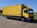 Number of axles: 2, Configuration: 4x2, Total fuel capacity: 180 litre, fifth-wheel: Fixed, Suspension type: air suspension, Cabin type: Short cabin, Cruise control, Tacho, Digital tachograph, Airconditioning, Electric windows, Electric mirrors, Radio/cassette, Color: Yellow, Heated mirrors, Lighting type: Halogen lamps, Laneassist, Bluetooth, Fuel type: diesel, Euro: 6, Gearbox kind: Telligent, Gearbox make: Mercedes Benz, Number of Gears: 6, Power steering, ABS, ASR, Starter battery, Seats configuration: 1+1, Seat cover: cloth, Chair adjustment: Manually, Taillift, Tail-lift kind: normal, Tail-lift capacity: 1500 kg, Tail-lift make: Palfinger, Tail-lift material: aluminium, Tail-lift size: 180 x 252
